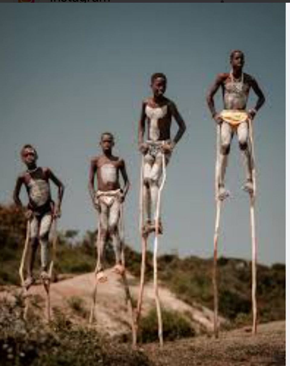 И тут, конечно же, гном Странник, немало повидавший на своём веку, не удержался и решил тоже поделиться своими воспоминаниями. Он рассказал, что, путешествуя по Африке, он однажды встретил одно чернокожее племя, в котором все молодые мужчины умели перемещаться и даже исполнять танцы на ходулях. Изначально эта традиция возникла из соображений безопасности: пастухам этого племени во время перемещений для выпаса стад животных требовались хороший обзор, а также сохранность от внезапных нападений хищников. Вот они и научились ходить на шестах, ловко возвышаясь над отарами и стадами. Затем этот навык стал своего рода инициализацией, свидетельством взросления юноши. Если молодой человек был в состоянии на празднике исполнить ритуальный танец на ходулях, его официально признавали зрелым мужчиной.